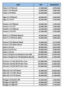 | 1.2 G CVT | Rp 238.500.000 |